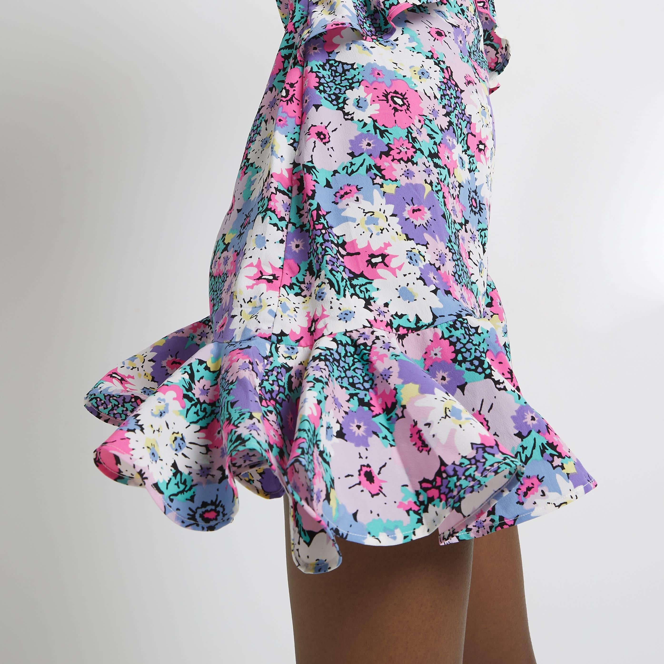 River Island Floral Frill Asymmetric Mini Dress In Pink Lyst Uk